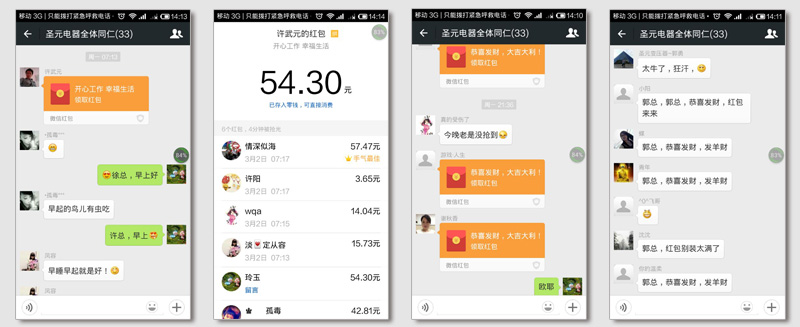 我們圣元也不落后,在微信群搶紅包,許總在年十一到年十五每天不定時發(fā)一封大紅包讓大家搶,當(dāng)然這個活動不會是在上班時間舉行,晚上微信群特別熱鬧,除了許總發(fā)紅包,大家加入了發(fā)紅包的隊伍中,紅包不大,卻搶的開心。