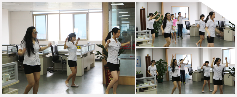 相信每天重復(fù)性的工作,生活平淡,日子長了,工作難免有一些懈怠。圣元為了提高大家的工作狀態(tài),特組織大家早上和下午上班前的二十分鐘內(nèi)跳操。從一開始的不好意思,到慢慢熟悉,最終完全學(xué)會。一首接一首的《大家一起來》、《最炫民族風(fēng)》、《就是我》的舞蹈,一遍又一遍的學(xué)著跳。