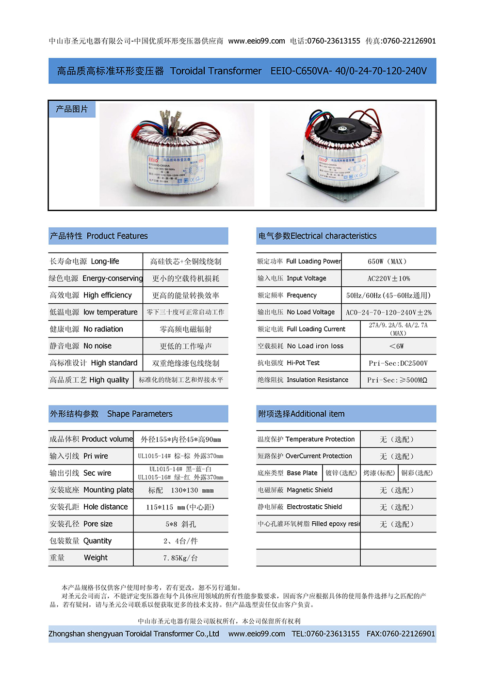 環(huán)形變壓器120W,可量身定制 [輸出帶短路保護]+