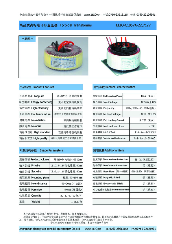 - 額定頻率50Hz/60Hz(45-60Hz通用)抗電強度PRI-SEC:DC2500V