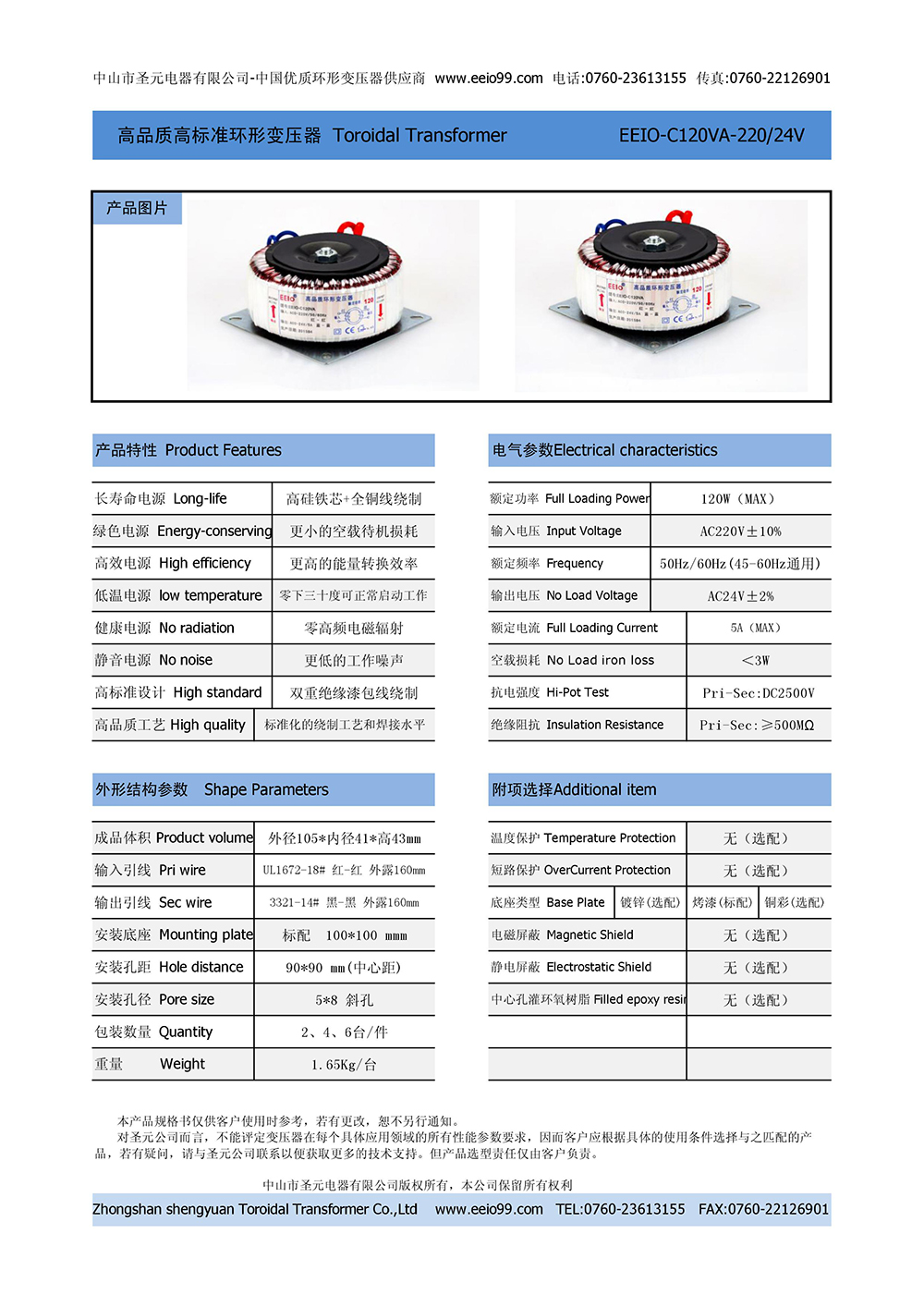 環(huán)形變壓器120W,可量身定制 [輸出帶短路保護(hù)]+