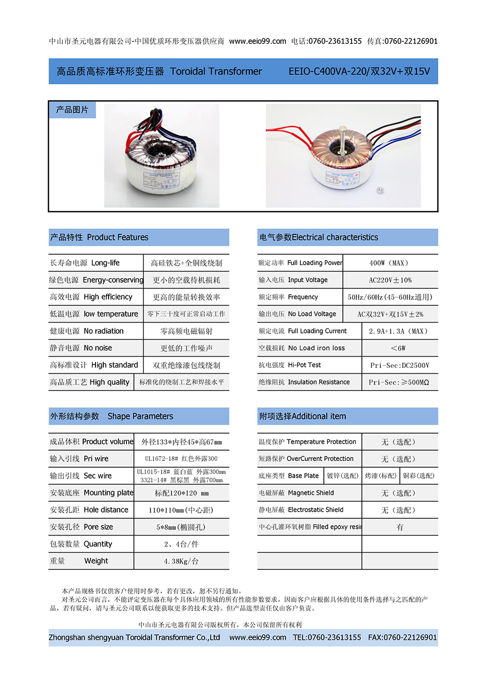 環(huán)形變壓器120W,可量身定制 [輸出帶短路保護(hù)]+