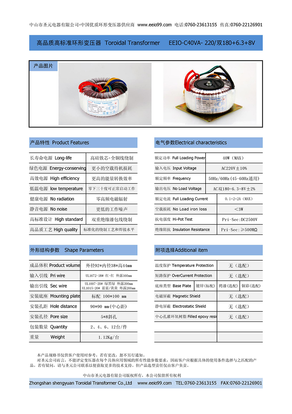 環(huán)形變壓器120W,可量身定制 [輸出帶短路保護]+