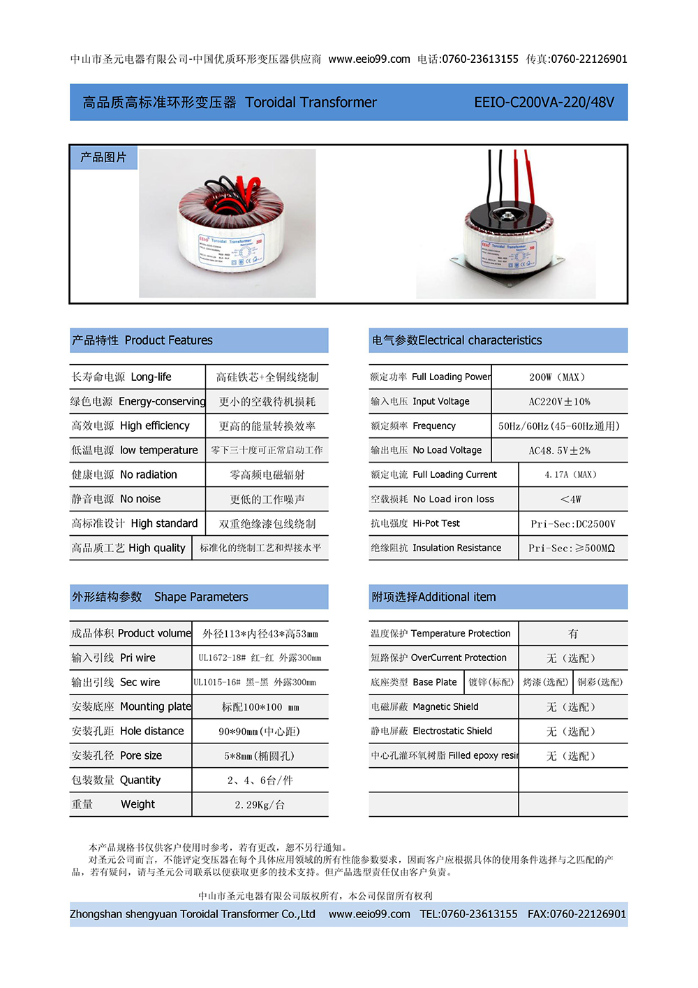 環(huán)形變壓器120W,可量身定制 [輸出帶短路保護(hù)]+