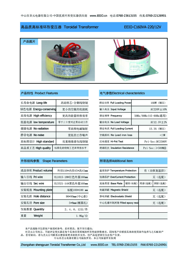 環(huán)形變壓器120W,可量身定制 [輸出帶短路保護(hù)]+