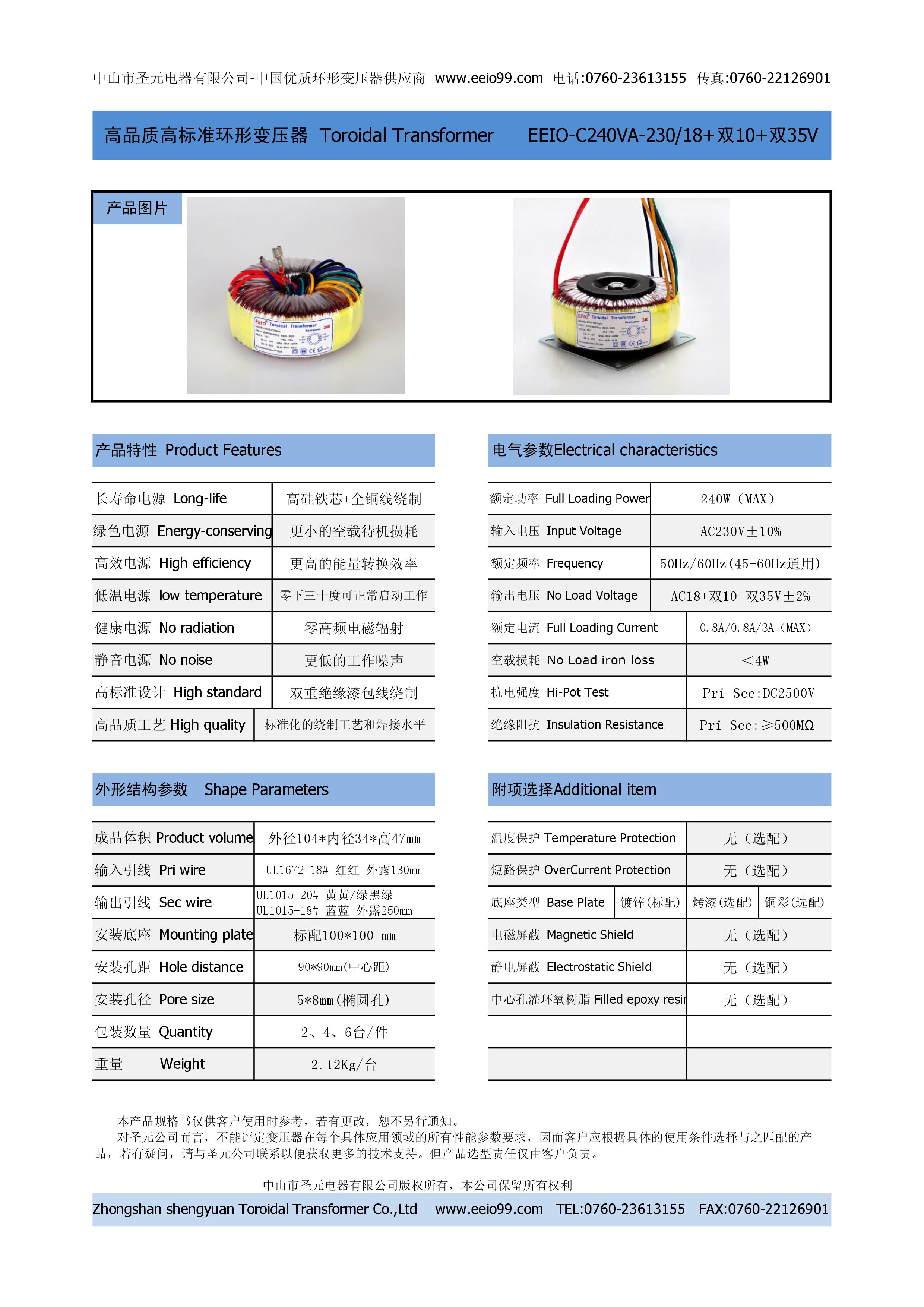 環(huán)形變壓器120W,可量身定制 [輸出帶短路保護(hù)]+
