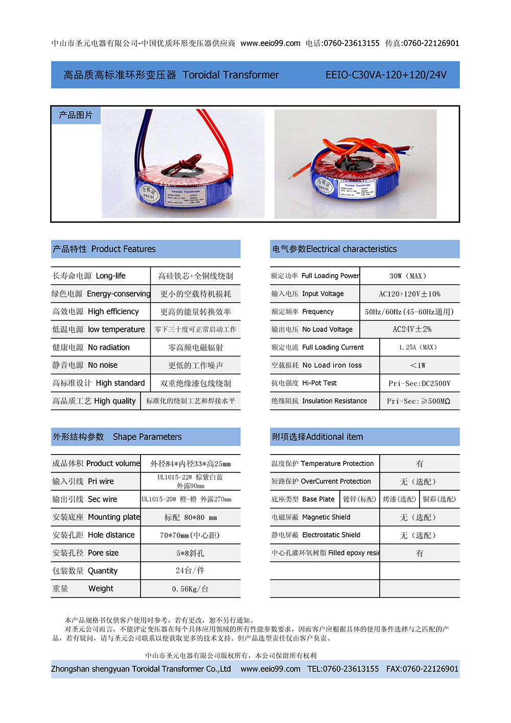 環(huán)形變壓器120W,可量身定制 [輸出帶短路保護(hù)]+